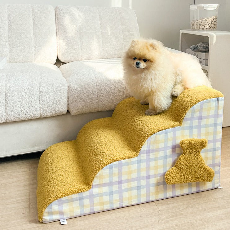 Give your pet a boost — gently, safely, and in style. The Famoré Cloud Plaid Pet Stairs are crafted to help small dogs and cats comfortably reach beds, sofas, and favorite corners of the home. Designed with a soft plaid texture, subtle colors, and a gradual incline, these stairs turn every step into a cozy experience.
