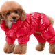Waterproof winter puppy jacket for small dogs, featuring soft padding, high collar and full-body snow suit style. Cute, warm and perfect for cold weather walks.